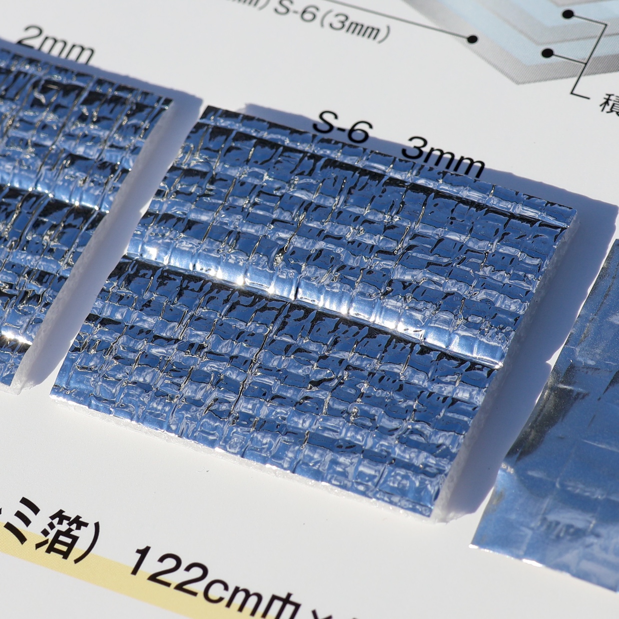 熱を遮断するアルミの特性を活かした商品 保冷保温シリーズの片面アルミ蒸着タイプ。 100年に渡り繊維製品を提案してきた大一帆布オリジナルのアルミ素材です。 保冷x保温x断熱機能をもった2mmのアルミ蒸着フィルムです。 アルミ蒸着フィルム・ポリエチレンクロス・断熱ポリエチレンフォームの3層構造で保冷カバー・保冷バッグ・保冷内袋に