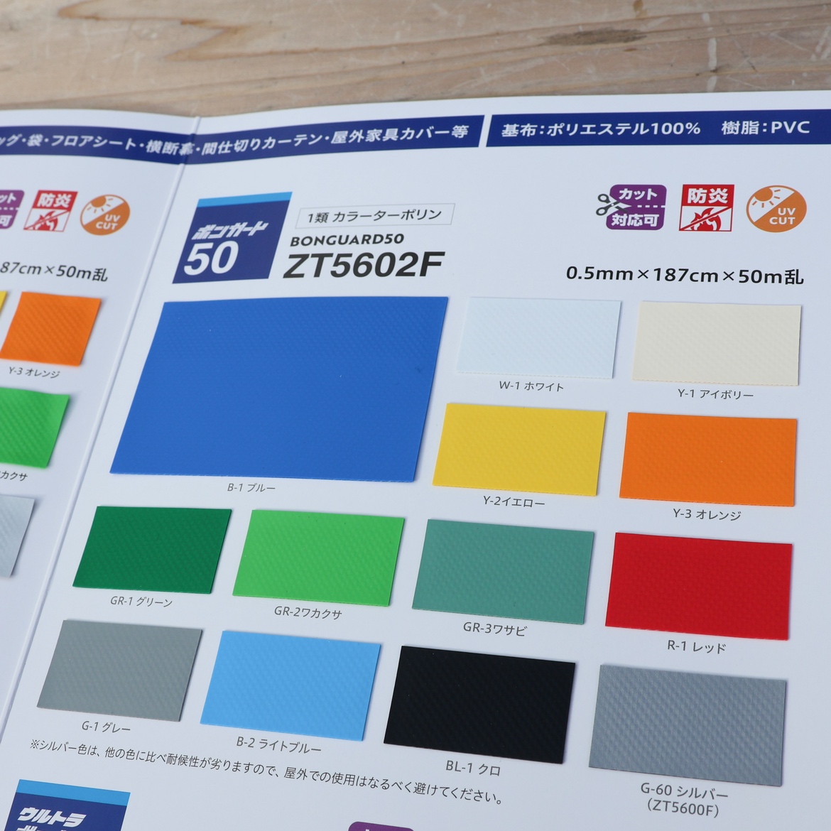 イノベックス製の0.5㎜厚のカラーターポリン。 産業用強力ポリエステル基布に、特別設計の塩化ビニール樹脂をコーティング加工したものになります。 イベントテントや養生シート、屋外カバーとしてもご利用いただける商材です。 もちろん、バッグや袋物にもご使用が可能です。